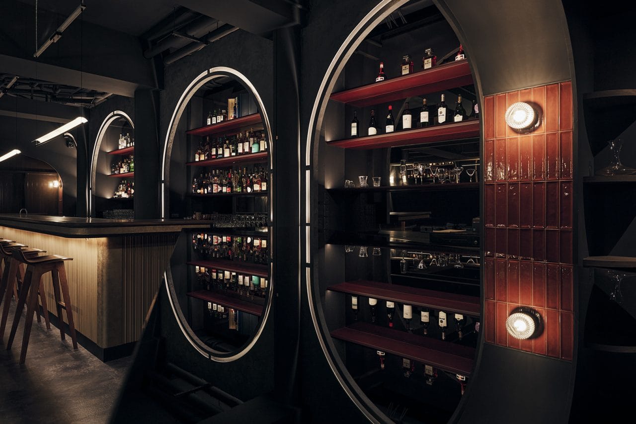 蓬勃發展的竹北,工程處處在進行,不同的建設紛紛搭起鷹架,建築著竹北的新氣象。酒吧Bar Neat,便是與城市裡持續發展的地景,做了大膽的結合──利用鐵件詮釋工地質感,並將工地常見的鷹架防塵網覆於其上,創造出既能阻隔視線,也能阻絕聲音的外牆,呈現大隱隱於市的神祕個性。室內空間以調酒為題,如從入口延伸至最深處的陣列圓柱,及吧檯背後連綿的拱型酒牆。將調酒時流動的水光線條,轉化成弧狀視覺,創造感官的串聯。場域中心,設置長型吧檯與圓拱酒牆相對。刻意營造如舞台般的吧台區,呈現一種指向性的牽引,視線自然而然匯聚於調酒師的手藝,而同時間手上觸摸的,是厚板實木檯面的溫潤。品酒不是單一的味覺,在Bar Neat 是場五感的盛宴。