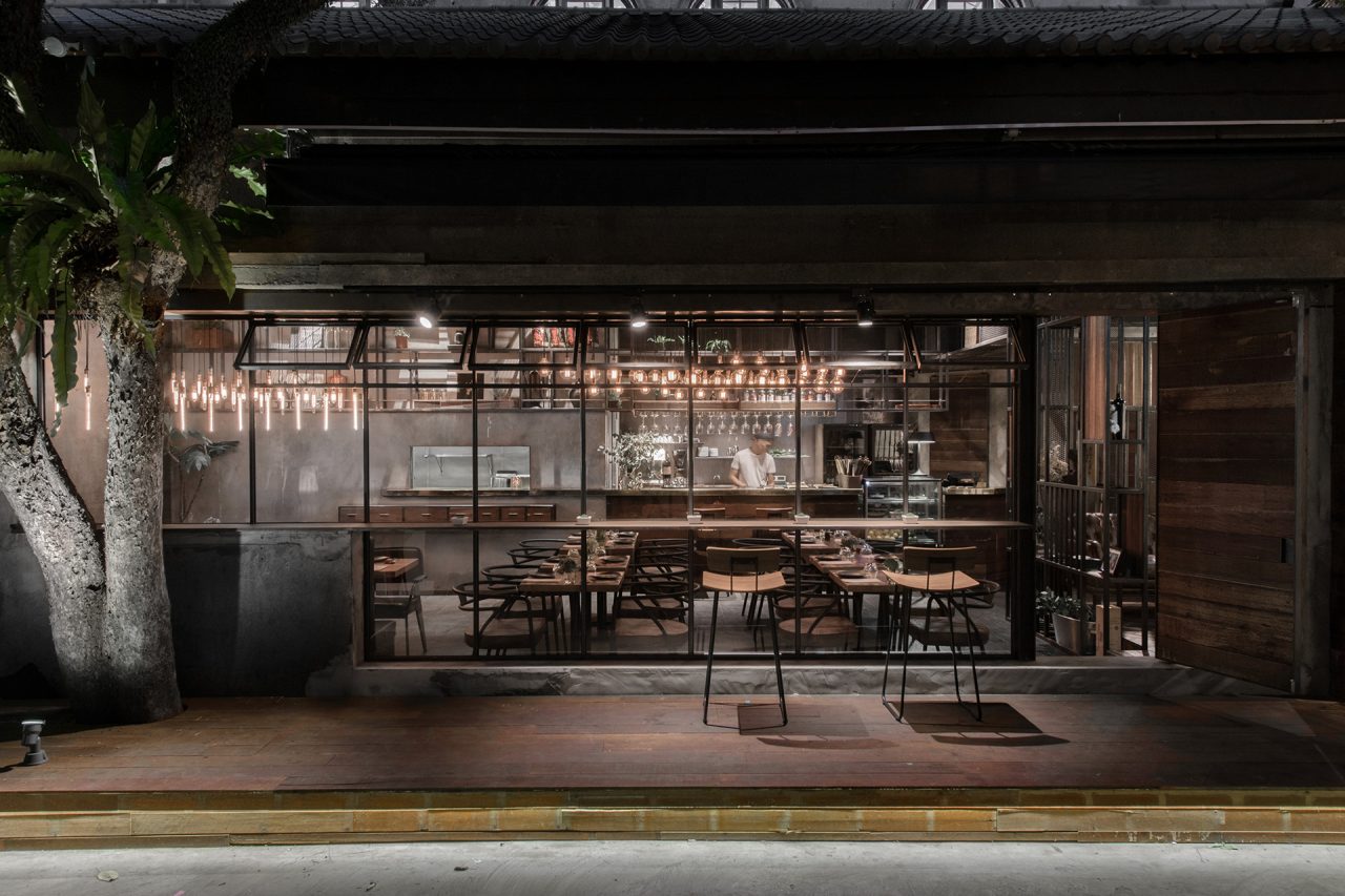〈隱身華山園區的義式餐廳 Piccola Botega〉座落華山文創園區的 Piccola Botega,是一間義式餐廳。當充滿歷史意義的建物環繞,如何從「舊」中化出「古」,成為一種更細緻的存在,道出整體設計的叩問。原始的建築群,窗框為傳統木製的方格窗;在拆補部分破舊牆面後,以鐵製的落地方窗替換,不僅保留原本的建築語言,持續與周邊鄰房相互呼應,也埋入了新生的語彙。大門處的牆面、吧台、與包廂內的地板,融入曾經使用過的舊木材,沙發與座椅則選用皮面妝點;刻意使用實木與皮面,這些隨著時間悠然,而更能襯出舊時剎那的材質,述說的是對老空間的尊重,讓懷舊的氣息繼續蔓延。頭頂天花保留原始的構建,抬眼便能望見,並運用燈光注入另一種描繪。燈,不是一點一點藏在天花板中發亮,而是趣味性的由點狀連成一個面,溫柔暗示著座位區的劃分,傳遞出新的視覺。